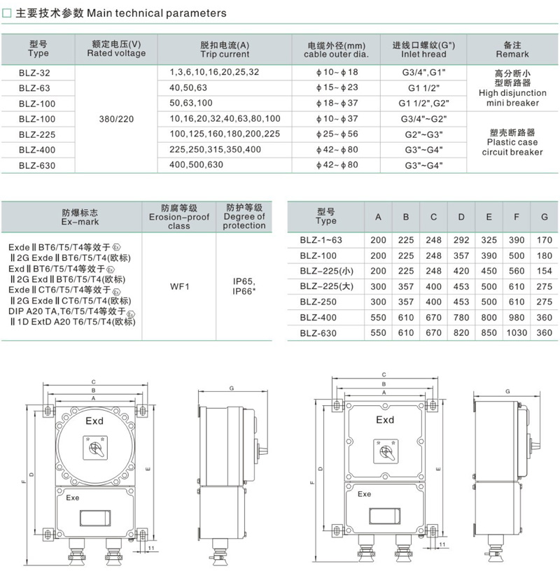 BLZ防爆斷路器開關箱防爆電器廠家范圍: